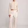 Foil pleated knit high-waist straight leg pants, elastic waist at back with invisible zipper.