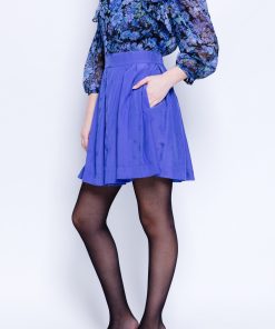 DescriptionSatin jacquard high waisted mini skirt with pleats.
