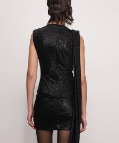 - Evening pleated knit with foil mini dress by Sabina Musayev.