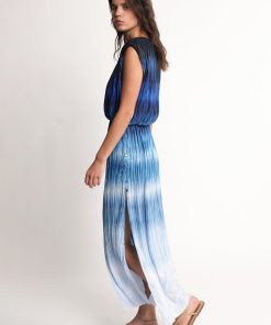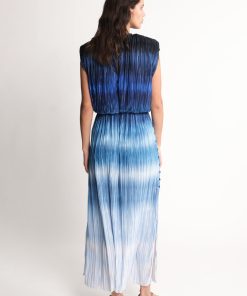 - Pleated gradient print sleeveless midi dress.