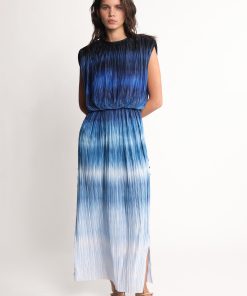 - Pleated gradient print sleeveless midi dress.