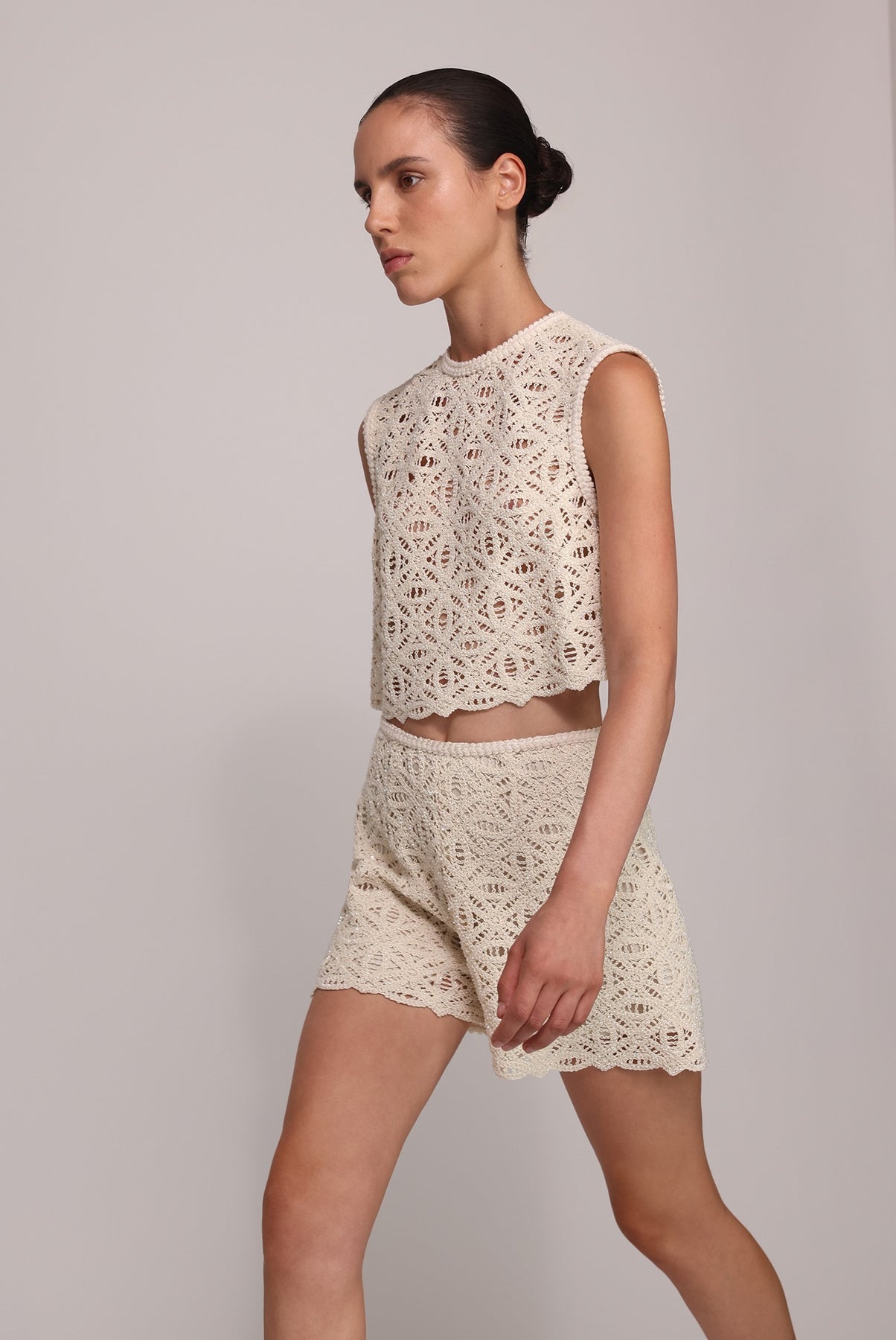 - Evening beaded crochet short pants by Sabina Musayev.