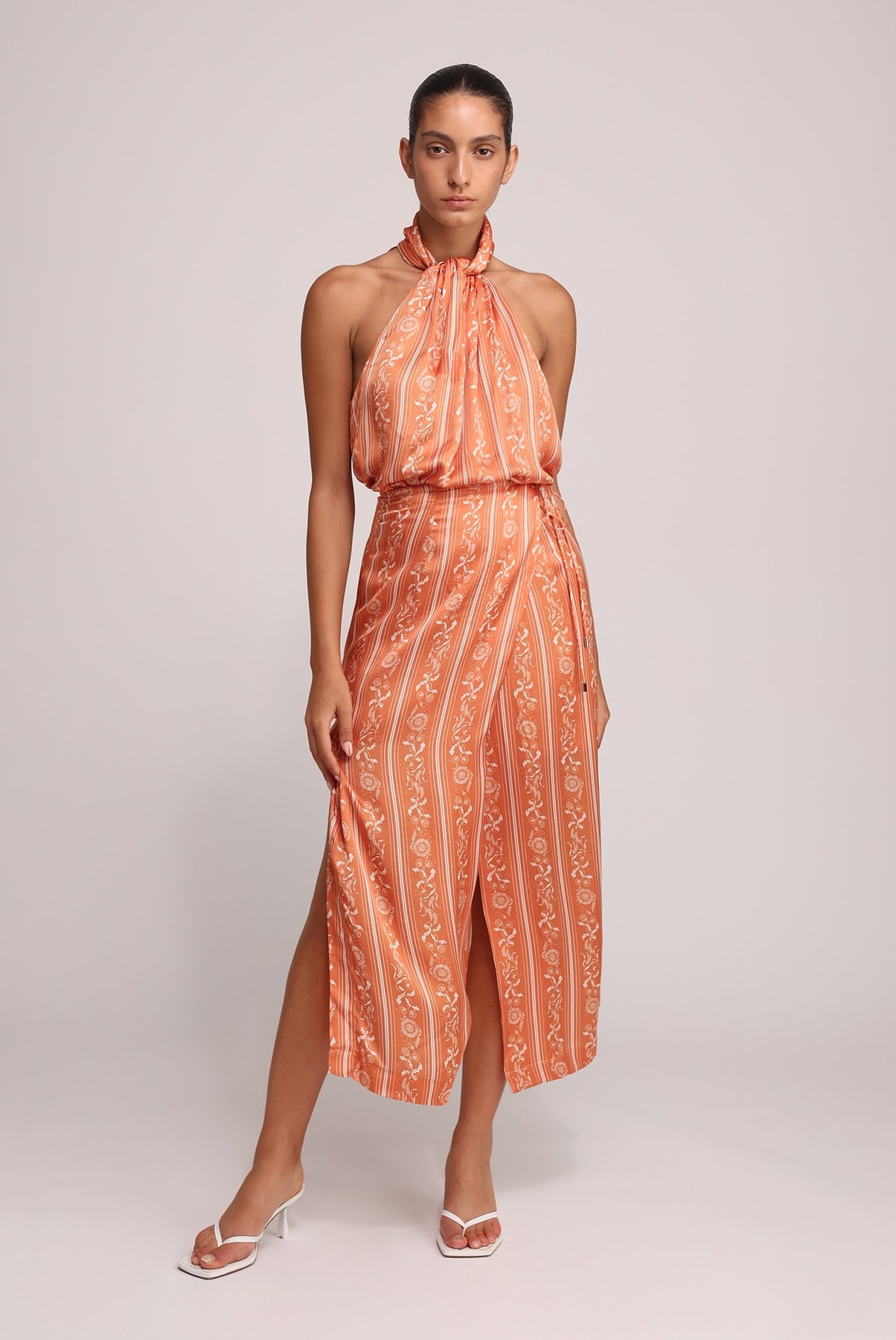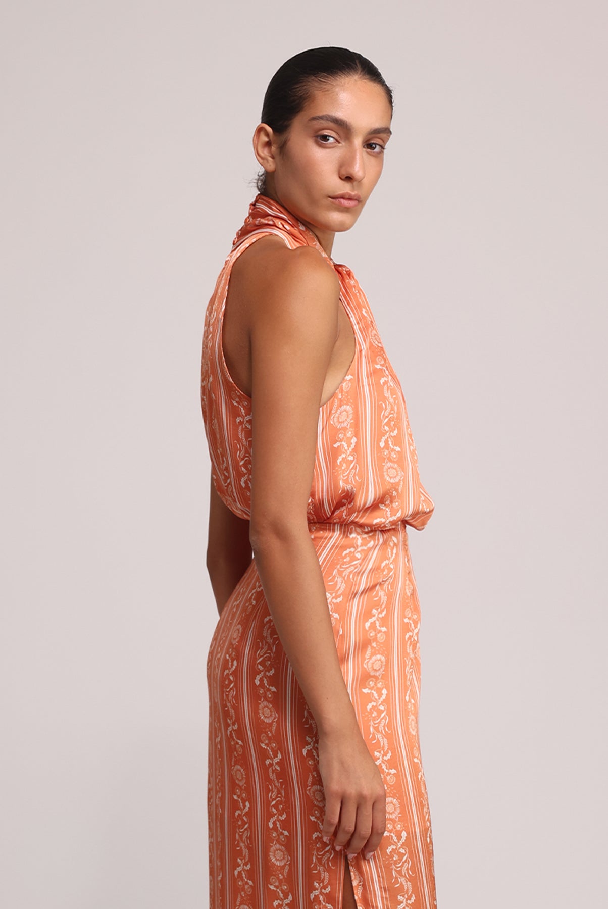 - Halter neck featuring three buttons at the back.
