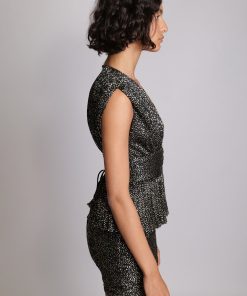 Pleated knit mini fitted skirt with gathering material, and invisible zipper at center back.