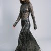Two-tone pleated knit with foil mini skirt with high waist, and gathering details.