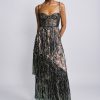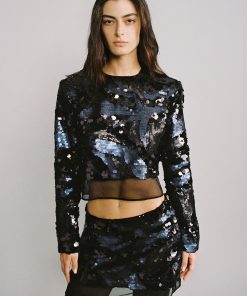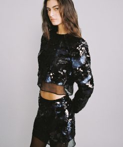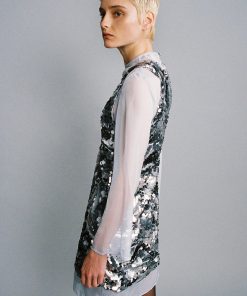 Gradient sequins on chiffon sleeveless mini dress with a deep V neckline.
