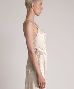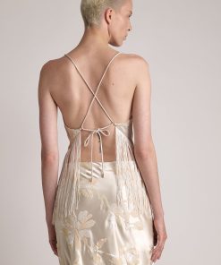 Blossom sequins on satin top with an adjustable halter neck, and tie back.