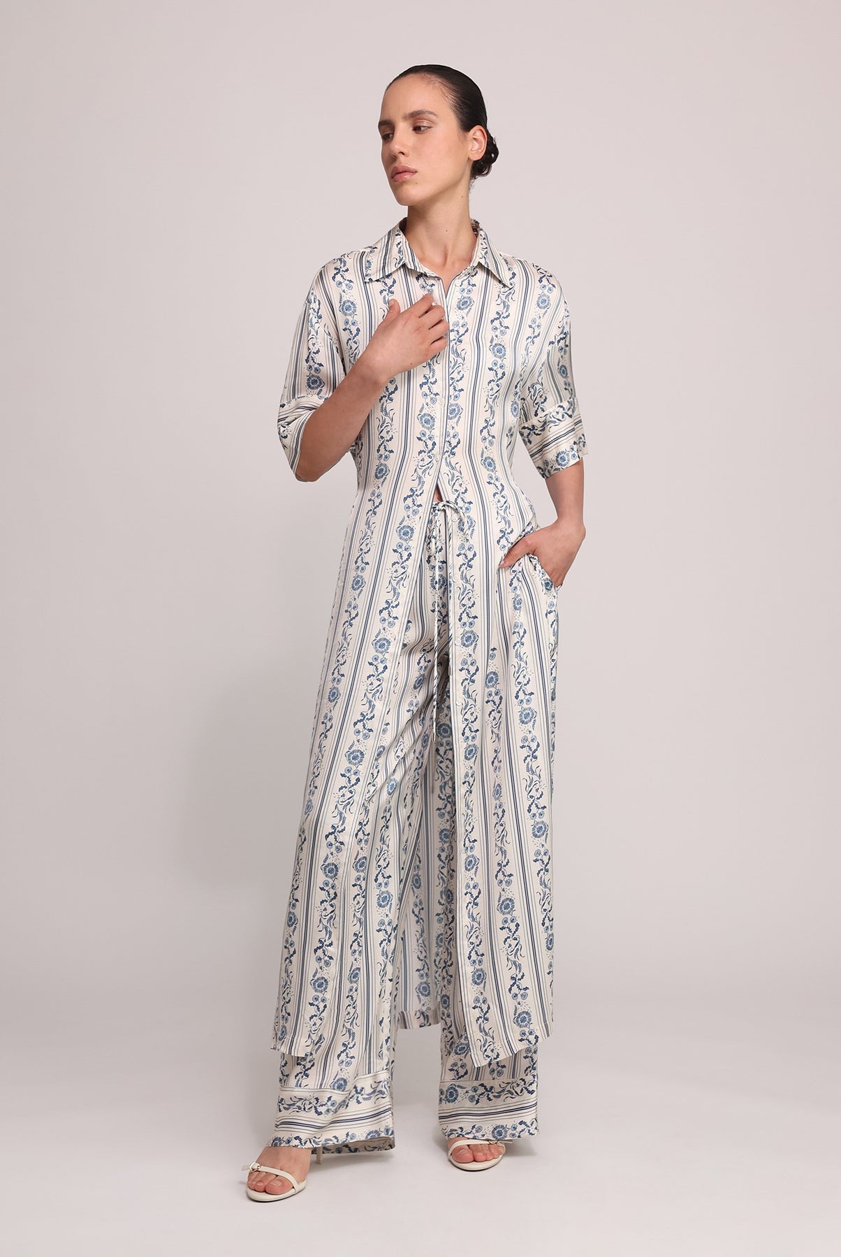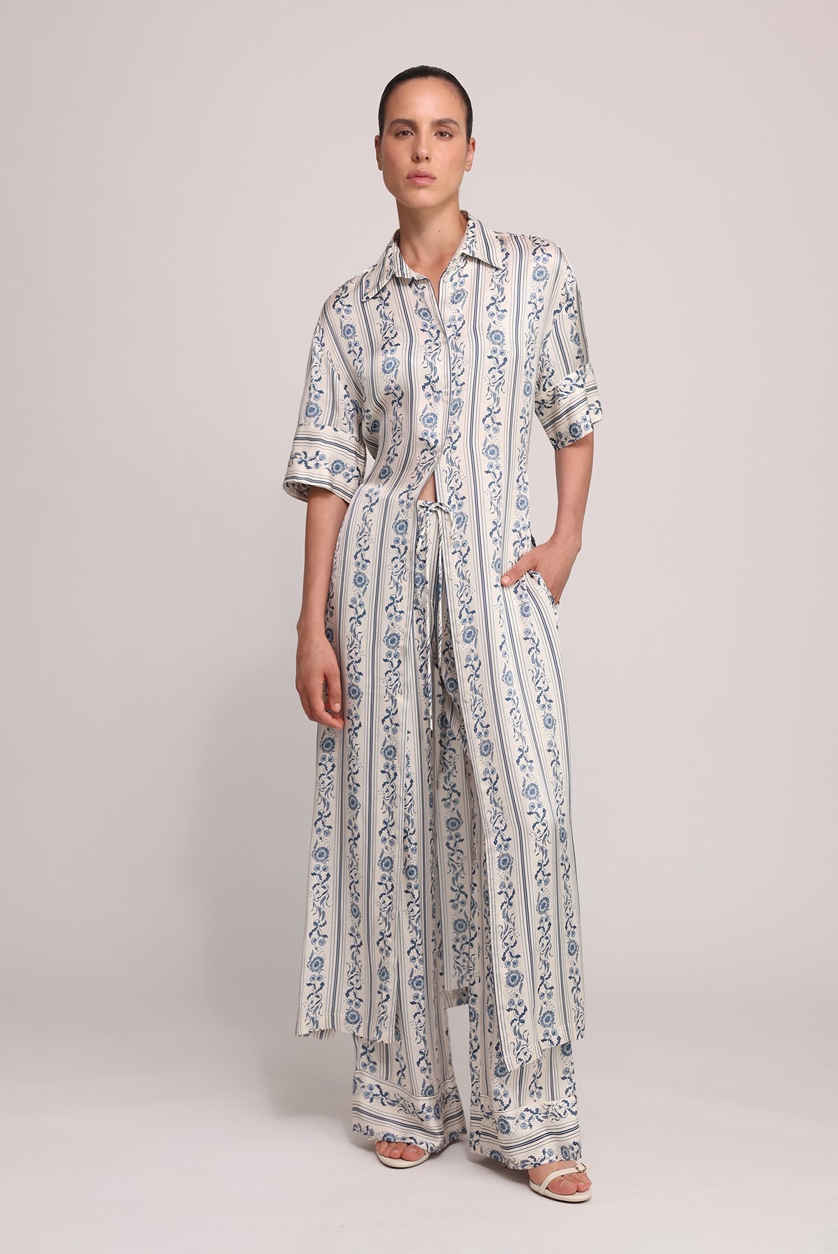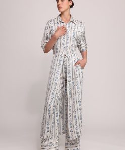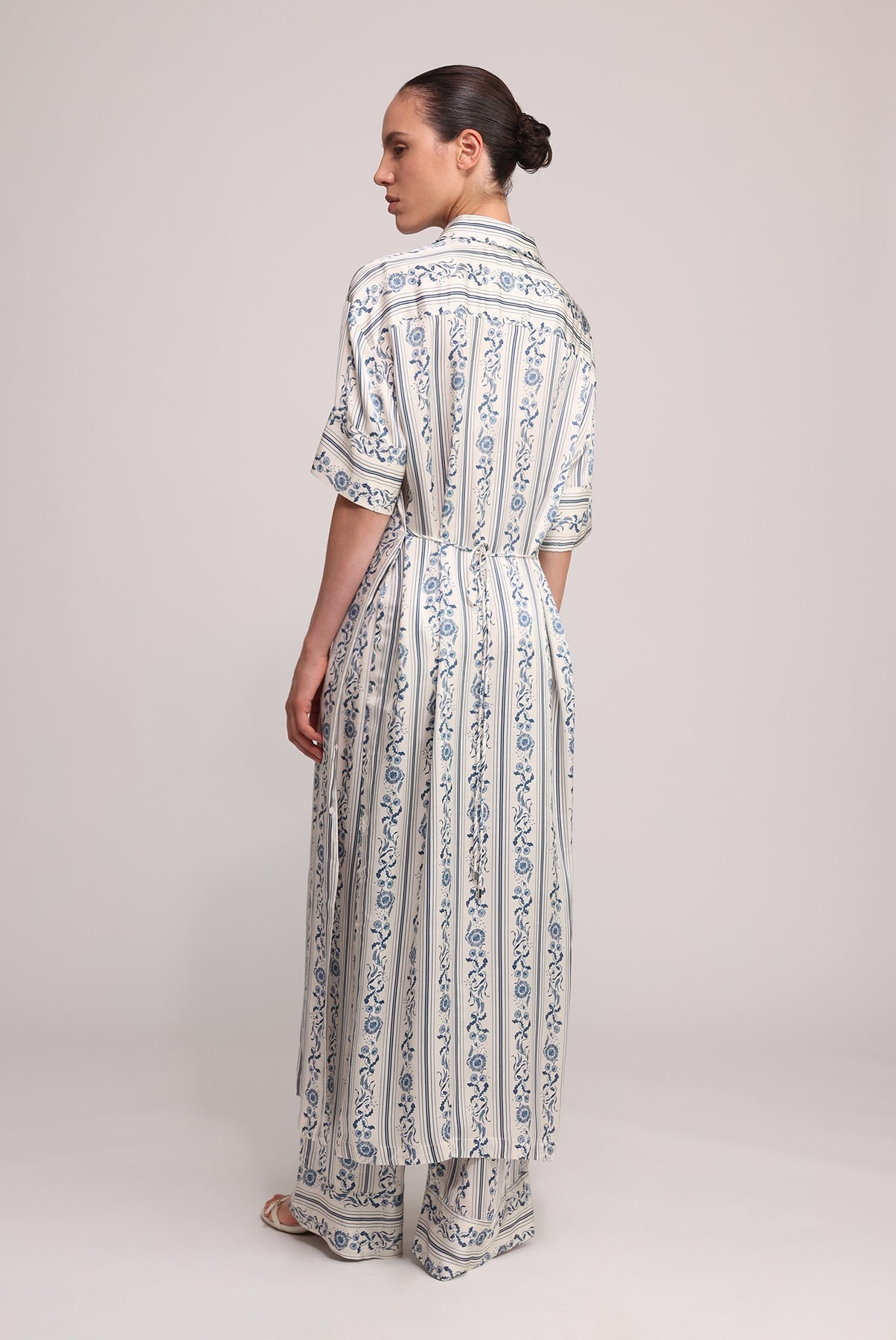 - Casual stripe print on satin midi collar dress by Sabina Musayev.