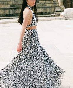 - Casual stripe print on satin midi collar dress by Sabina Musayev.