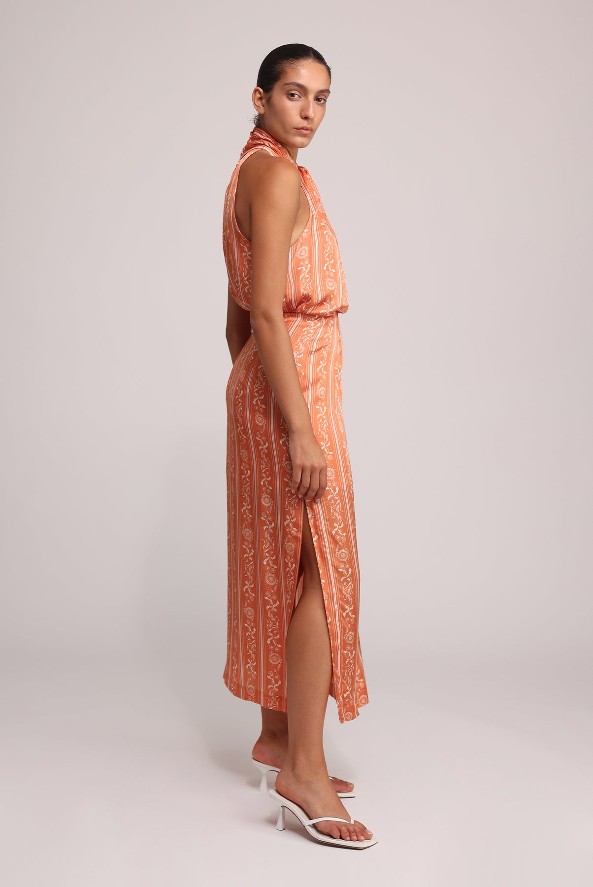 - Casual stripe print on satin high-waist skirt by Sabina Musayev.