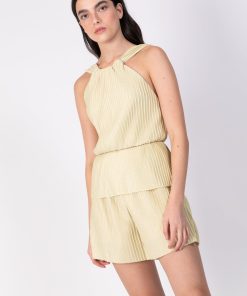 DescriptionPleated knit short pants.
