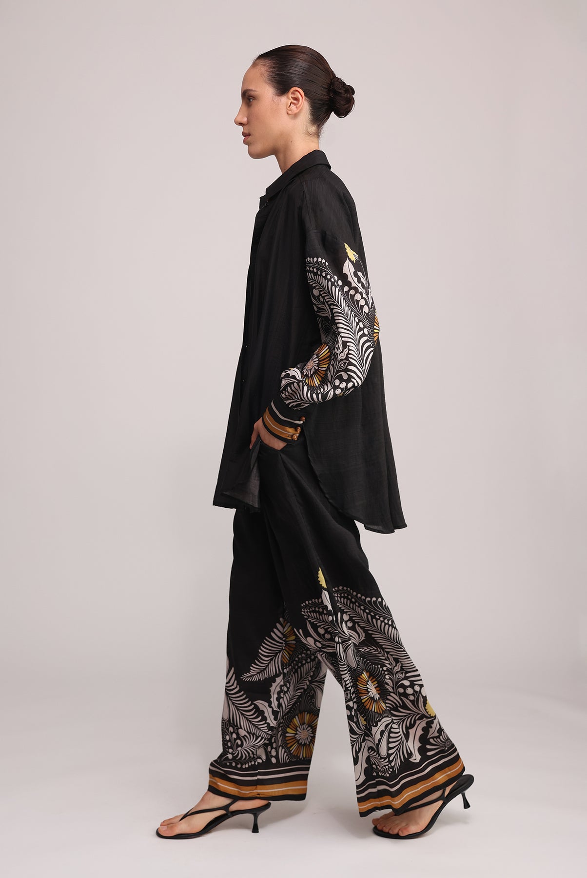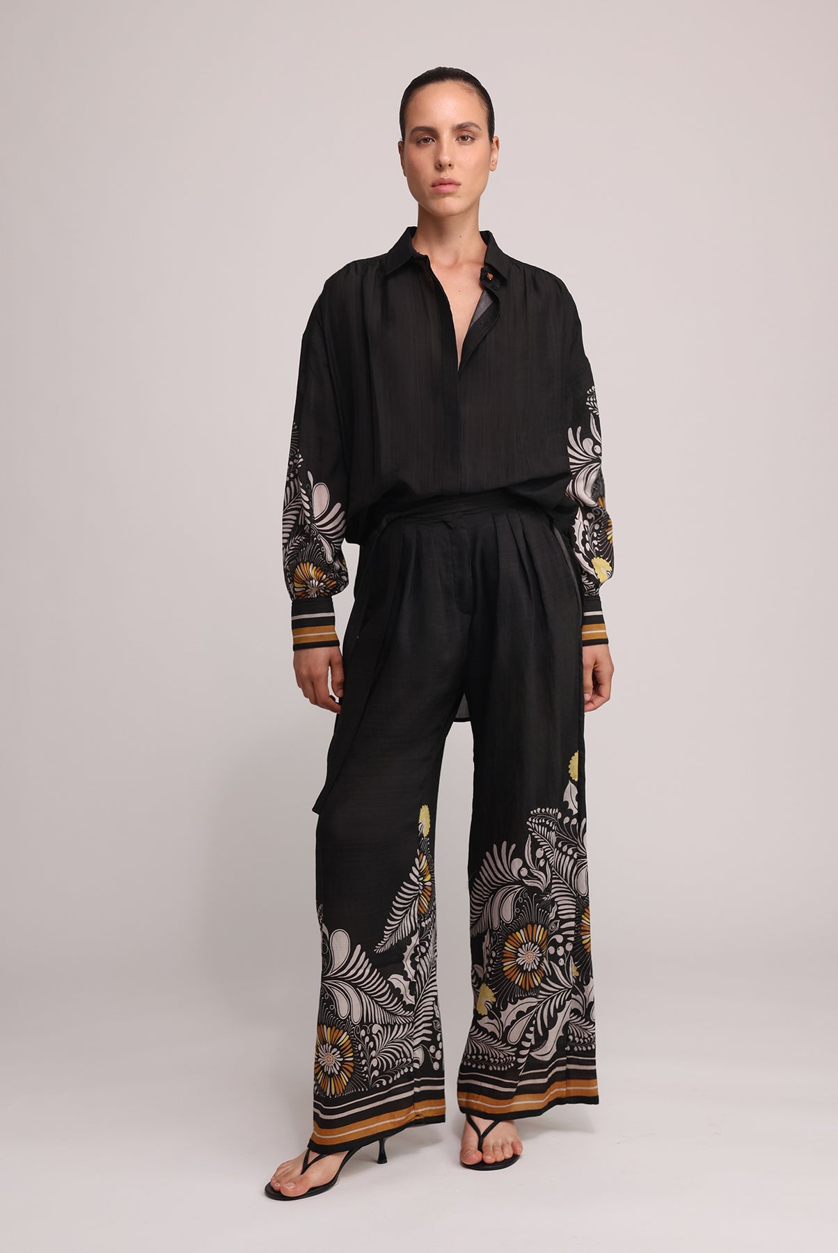- Casual sunflower print wide leg pants by Sabina Musayev.