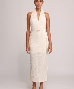 - Casual crinkled knit halter neck midi dress by Sabina Musayev.