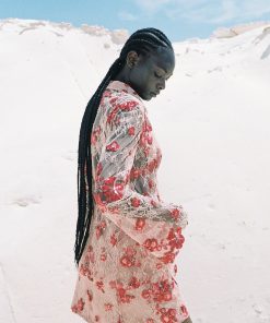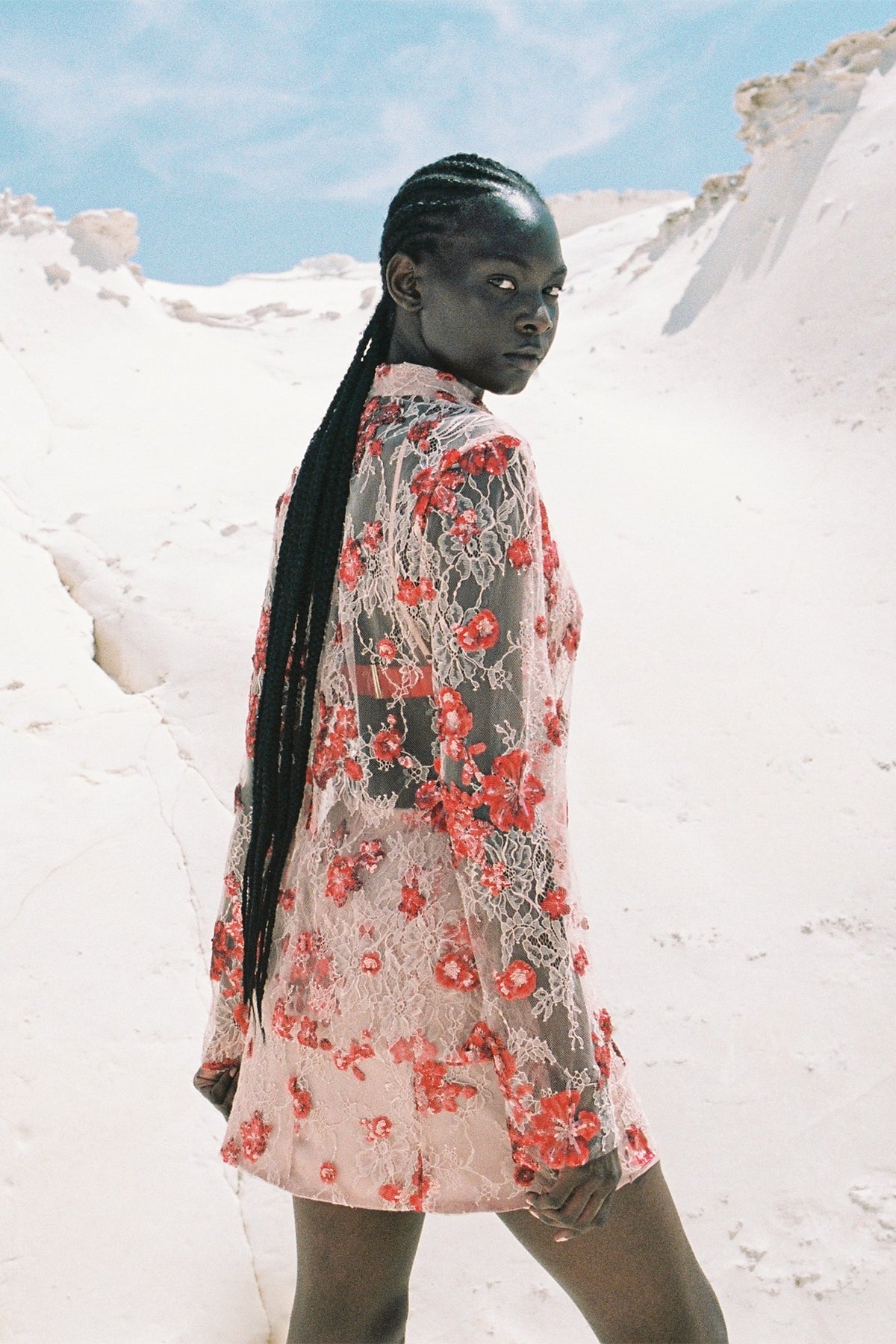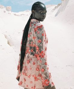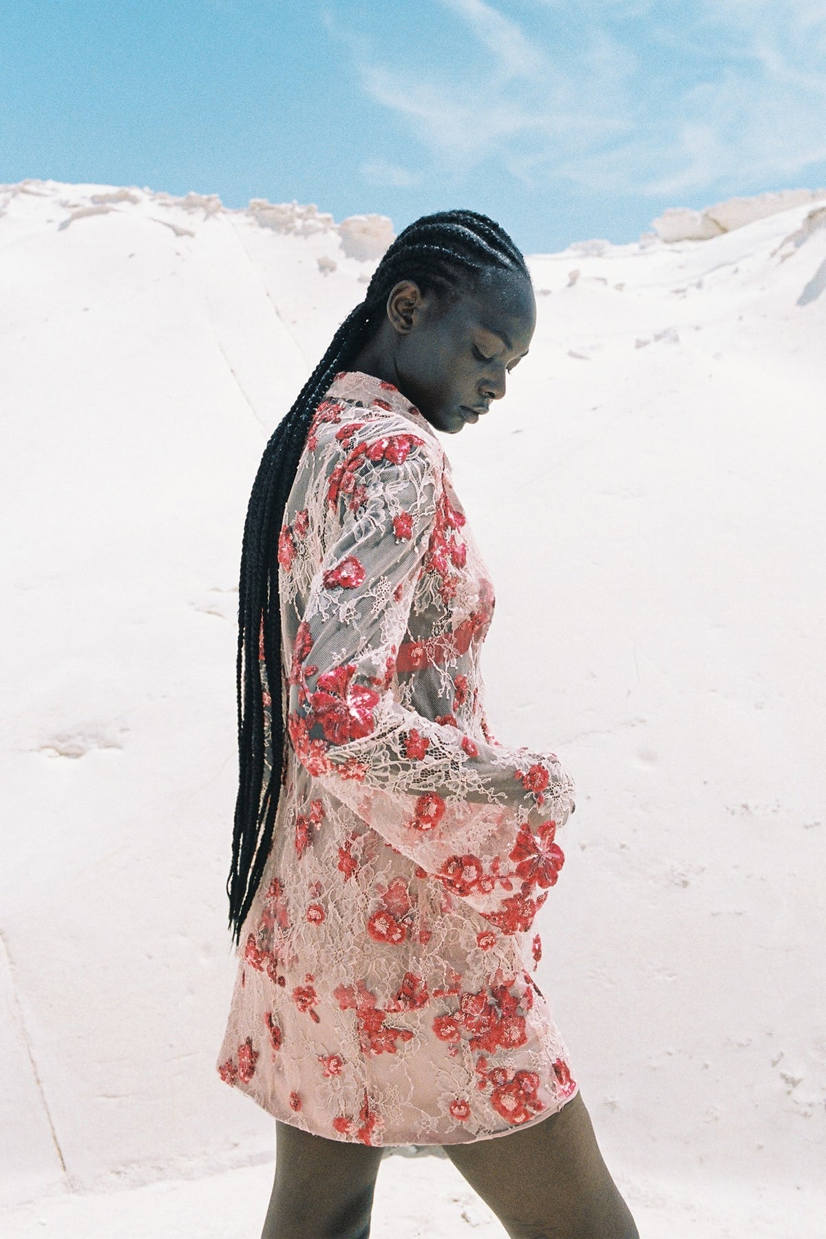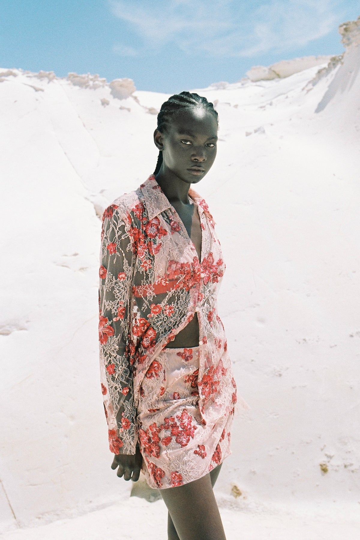 Floral sequin on soltice lace mini skirt with invisible zipper.