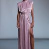Sequined lace high waist skirt with invisible zipper at the back, and a slit at the hem.