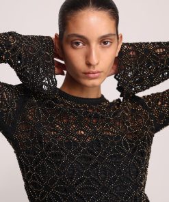- Evening beaded crochet mini dress with round neckline by Sabina Musayev.