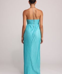 - Floral embossed pleated knit halter maxi dress by Sabina Musayev.