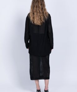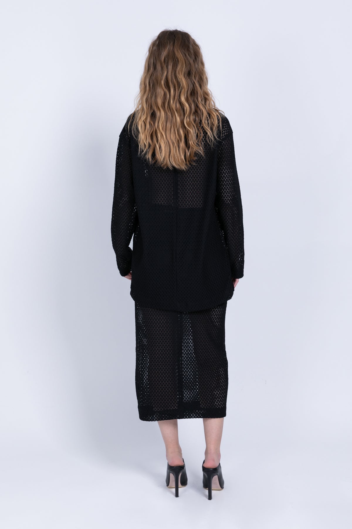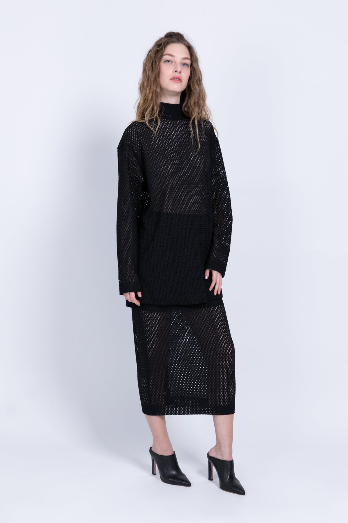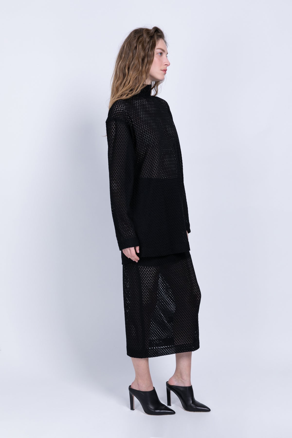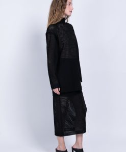 Knit crochet midi pencil high-waist skirt with anelastic waistband.