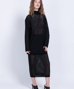 Knit crochet midi pencil high-waist skirt with anelastic waistband.