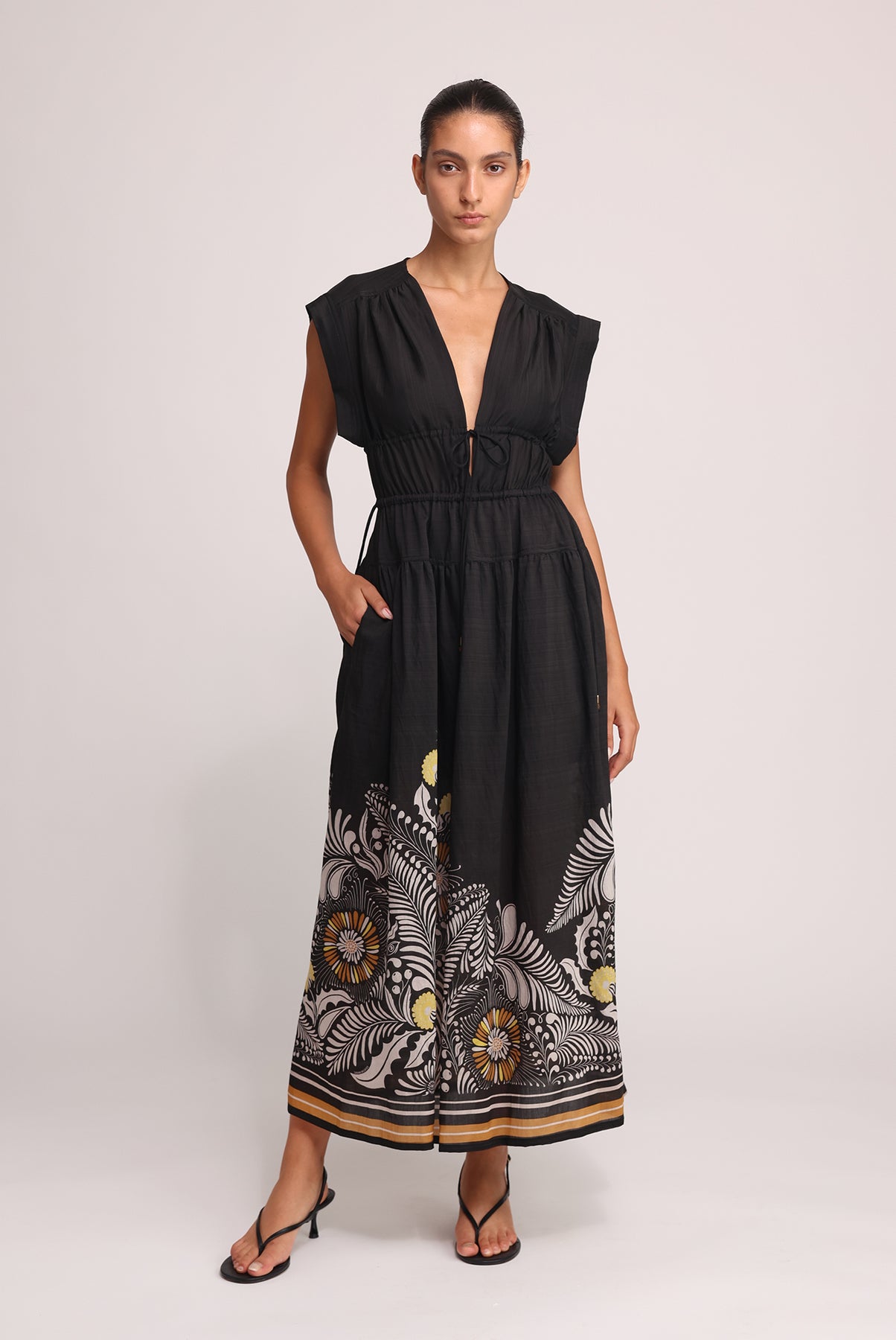 - Casual sunflower print midi sleeveless dress by Sabina Musayev.