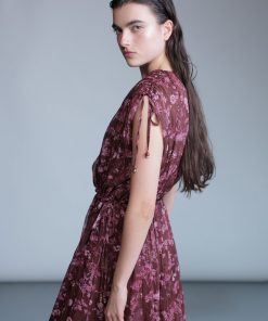 Wild flower print sleeveless maxi dress featuring a deep V-neckline, gathering details at the shoulders and waist with drawstring rope.