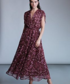 Wild flower print sleeveless maxi dress featuring a deep V-neckline, gathering details at the shoulders and waist with drawstring rope.