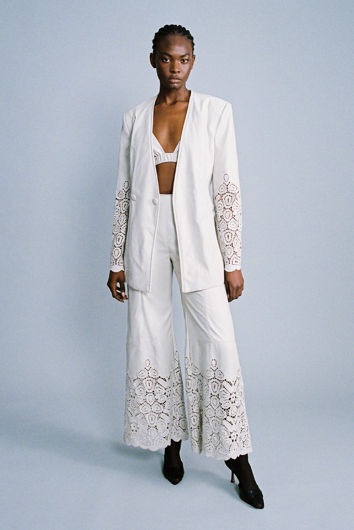 Faux leather high waist pants featuring a wide leg.