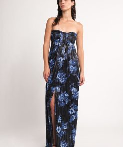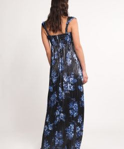 - Pleated knit with floral print maxi dress.