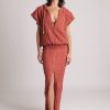 Shiny printed viscose high waisted fitted mini skirt with front tie detail.
