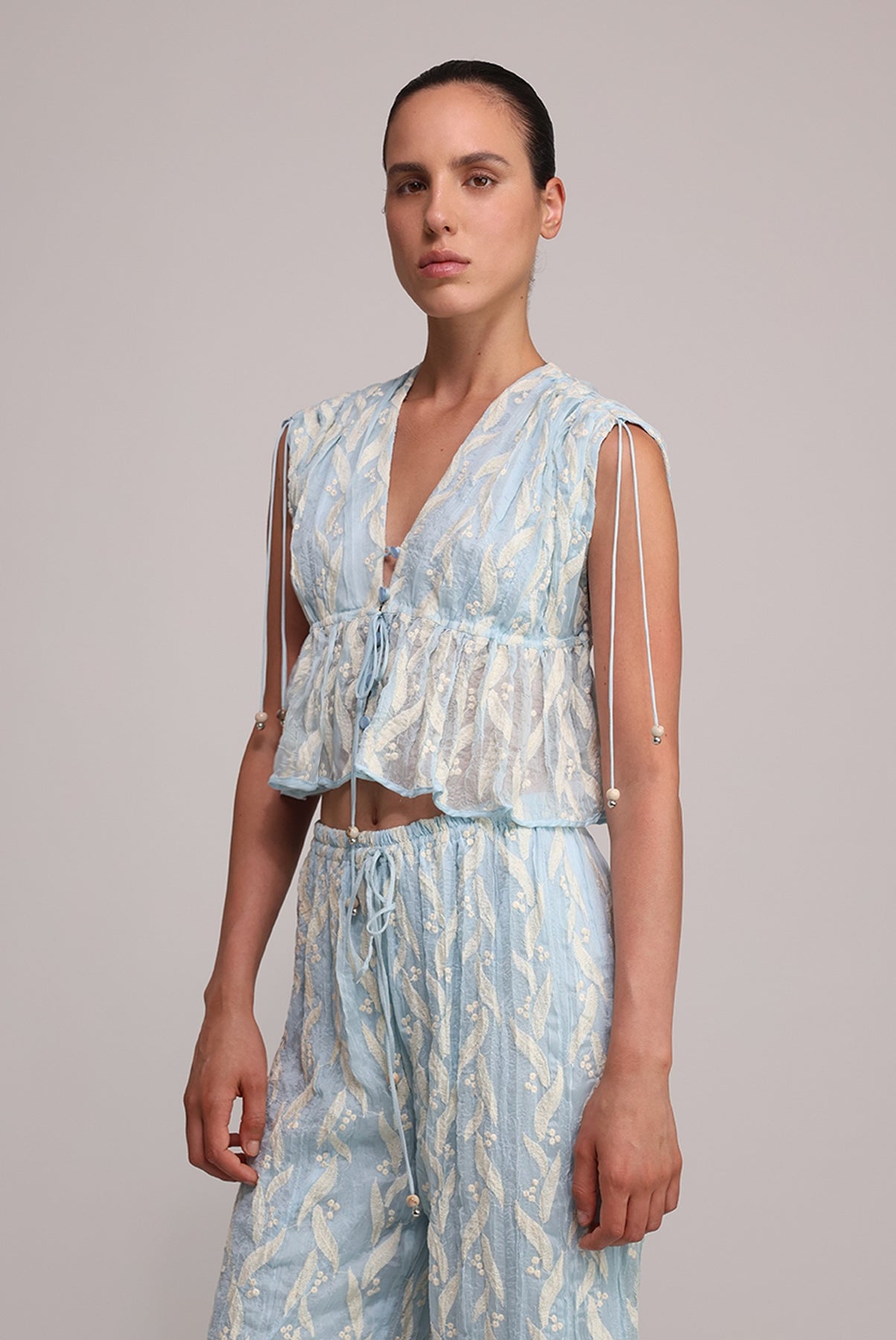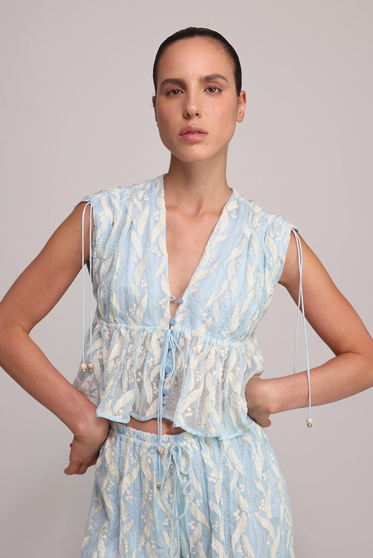 - Casual pleated chiffon with emb top by Sabina Musayev.