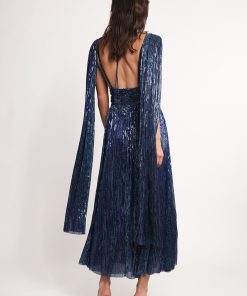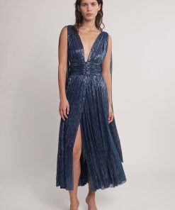 - Ray lurex midi dress with V neckline.