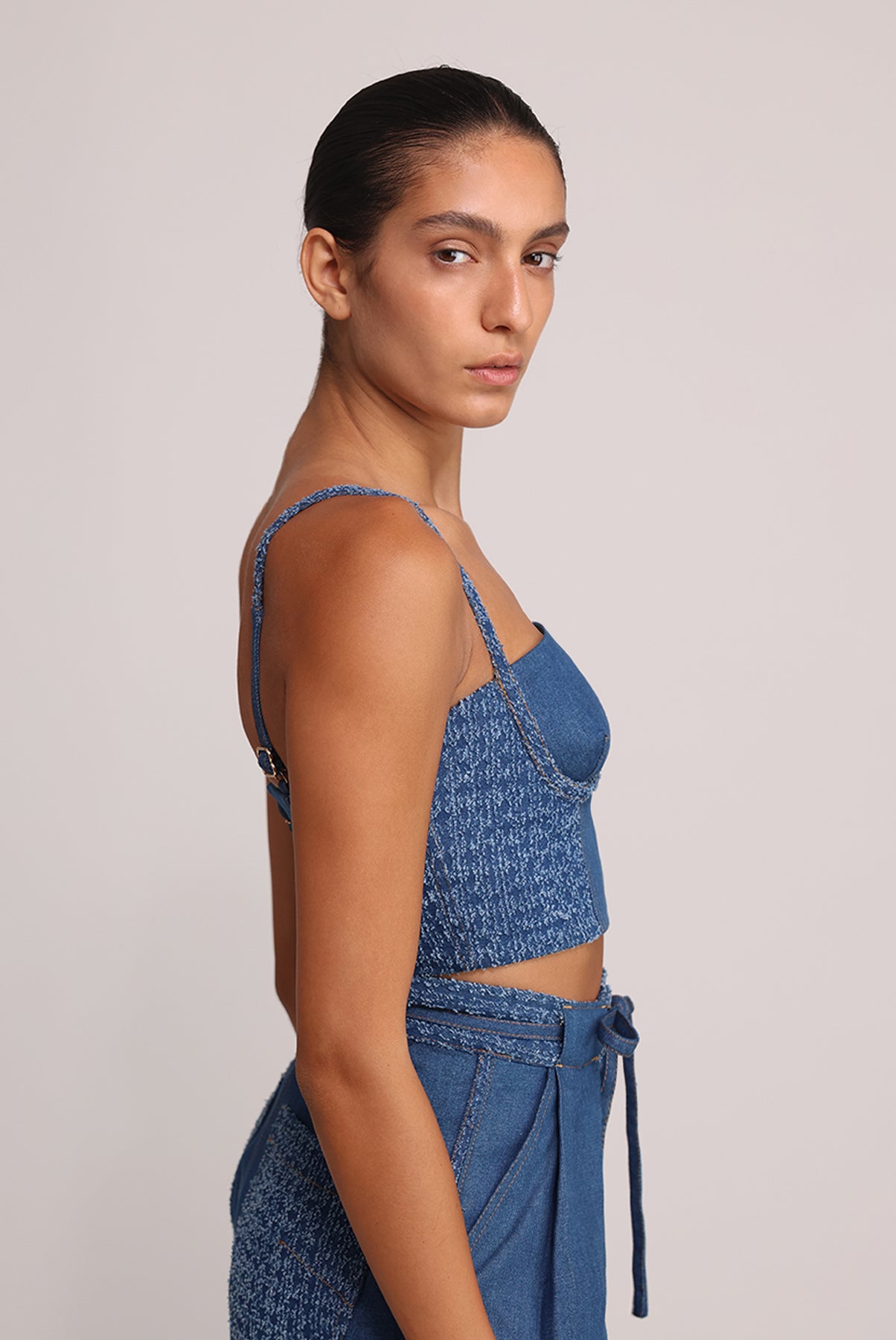 - Casual denim top by Sabina Musayev.