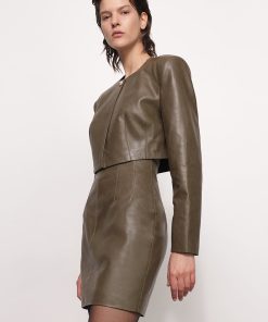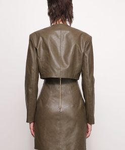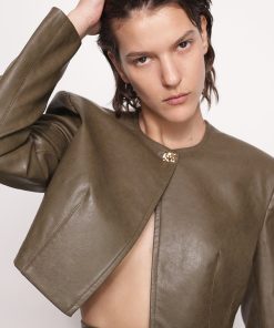 - Casual vegan leather crop jacket by Sabina Musayev.
