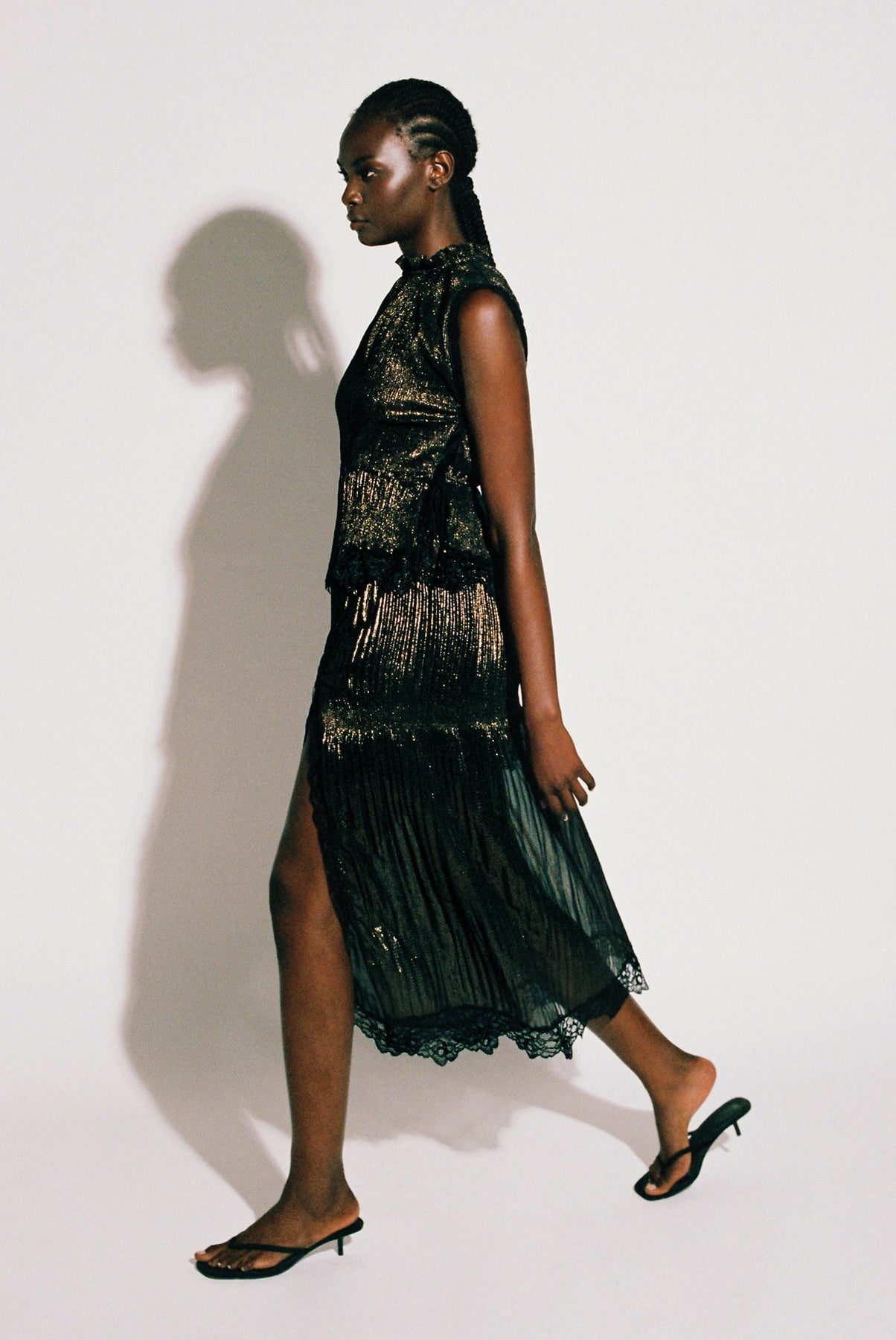 - Evening pleated chiffon with foil flared skirt by Sabina Musayev.